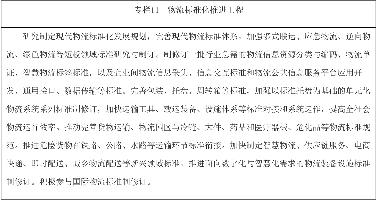 ——現(xiàn)代物流發(fā)展制度環(huán)境更加完善。物流標(biāo)準(zhǔn)規(guī)范體系進(jìn)一步健全,標(biāo)準(zhǔn)化、集裝化、單元化物流裝載器具和包裝基礎(chǔ)模數(shù)廣泛應(yīng)用。社會(huì)物流統(tǒng)計(jì)體系、信用體系更加健全,營(yíng)商環(huán)境持續(xù)優(yōu)化,行業(yè)協(xié)同治理體系不斷完善、治理能力顯著提升。