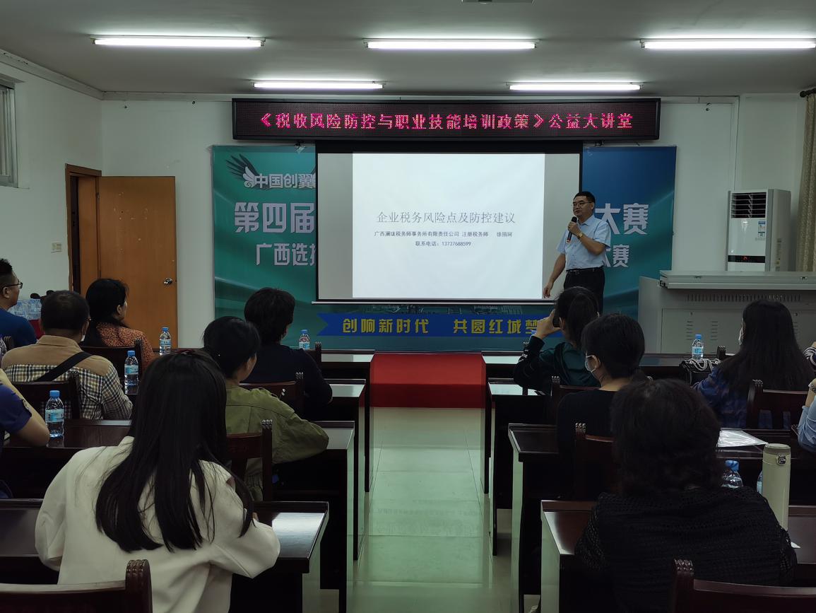 ????????本次大講堂由具備注冊(cè)稅務(wù)師資格人員及政府人社行政管理部門職業(yè)建設(shè)負(fù)責(zé)同志授課。稅收風(fēng)險(xiǎn)防控課程包括企業(yè)稅務(wù)風(fēng)險(xiǎn)點(diǎn)與防控、法律法規(guī)、風(fēng)險(xiǎn)防控體系建設(shè)、發(fā)票管理等內(nèi)容,以及結(jié)合案例進(jìn)行講解;職業(yè)技能培方面主要對(duì)職業(yè)技能培訓(xùn)政策解讀,助力行業(yè)企業(yè)合法合規(guī)經(jīng)營和各類政策的運(yùn)用。