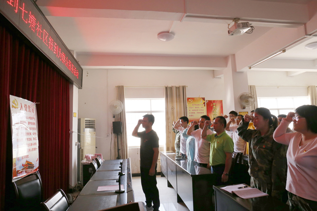 ????????之后,全體黨員重溫《入黨誓詞》?!拔抑驹讣尤胫袊伯a(chǎn)黨,擁護(hù)黨的綱領(lǐng),遵守黨的章程,履行黨員義務(wù),執(zhí)行黨的決定......”,清澈嘹亮的聲音貫穿整個會場,進(jìn)一步強(qiáng)化了黨員的責(zé)任意識。