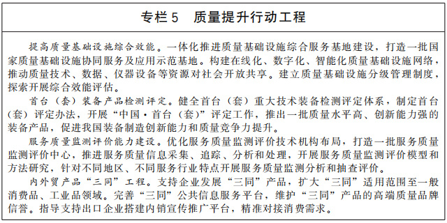 大力推進質(zhì)量強國建設(shè),深入實施質(zhì)量提升行動,統(tǒng)籌推進企業(yè)、行業(yè)、產(chǎn)業(yè)質(zhì)量提升,加強全面質(zhì)量管理和質(zhì)量基礎(chǔ)設(shè)施體系建設(shè),全面提升產(chǎn)品和服務(wù)質(zhì)量水平,塑造產(chǎn)品供給和需求良性互動的大市場。