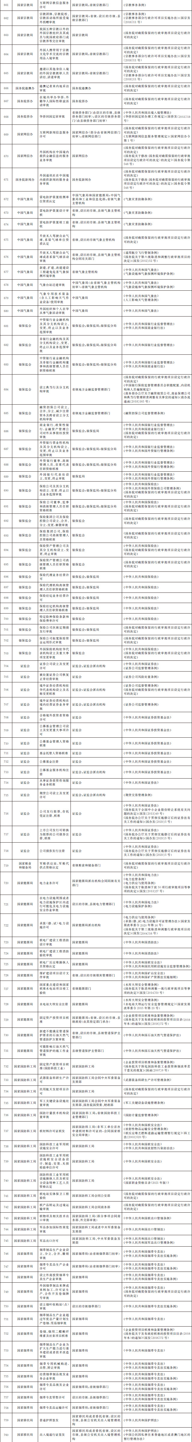 法律、行政法規(guī)、國務(wù)院決定設(shè)定的行政許可事項(xiàng)清單