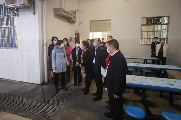 4月2日下午,市人大常委會(huì)副主任黃運(yùn)志到我公司下屬益眾托管公司逸夫校區(qū)就開學(xué)前校園疫情防控準(zhǔn)備工作進(jìn)行檢查,重點(diǎn)查看了校區(qū)食堂、就餐區(qū)、托管宿舍樓、防疫物資儲(chǔ)備室等地。